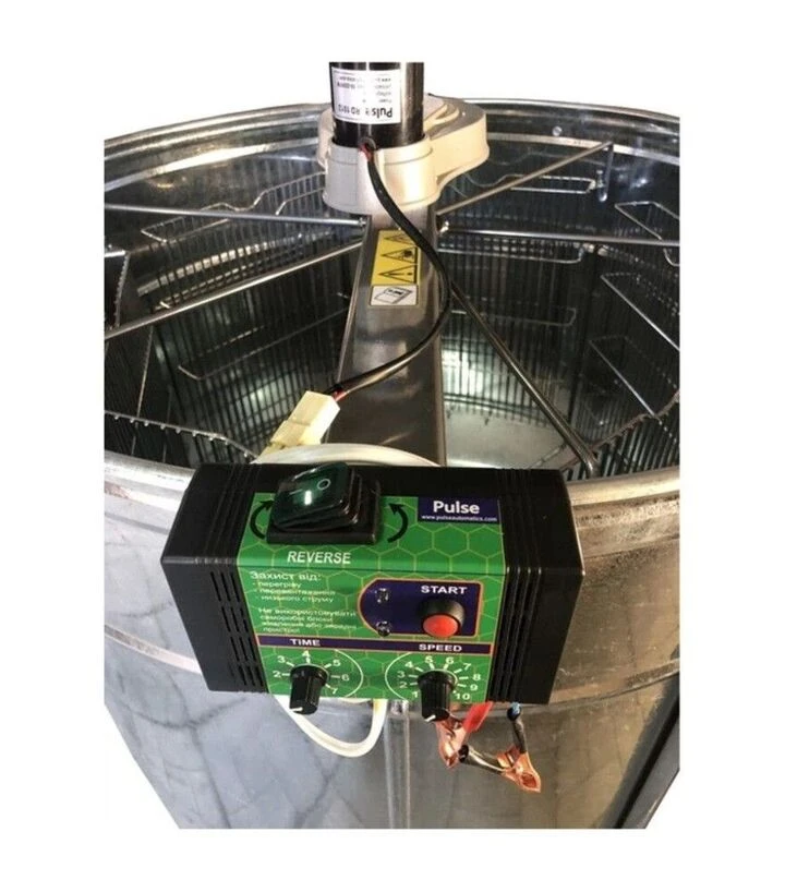 Рамки встановлюються в касети всередині бака. Обертання забезпечується ремінним електроприводом Pulse RD 1012 потужністю 100 Вт, який працює від напруги 12 В. Керування здійснюється механічним пультом. Під час відкачування цикл обертання змінює напрямок, що дозволяє відбирати мед з обох сторін рамки без її ручного перевертання.