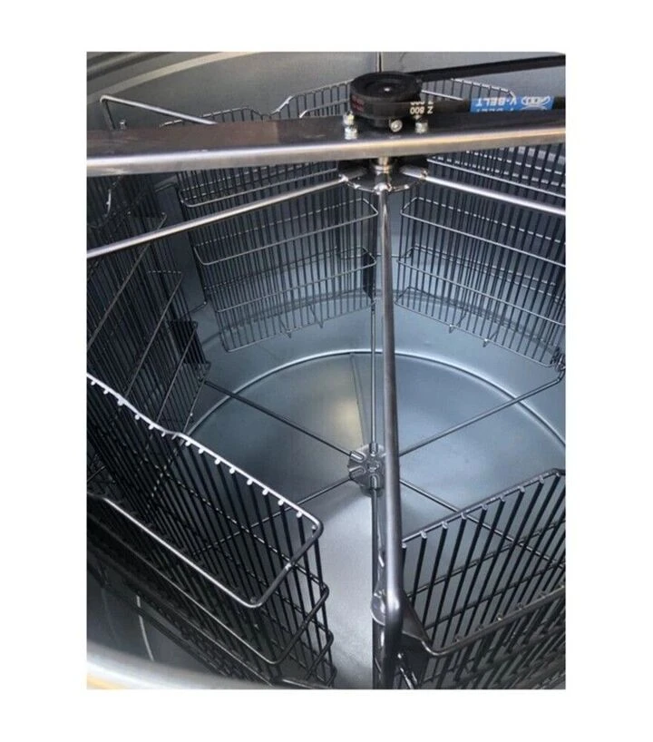 Медогонка 6-ти рамкова поворотна оцинкована, ремінний привід (M93244) є практичним рішенням для пасік, де важливі продуктивність, простота конструкції та контрольований процес відкачування меду без використання електроприводу.