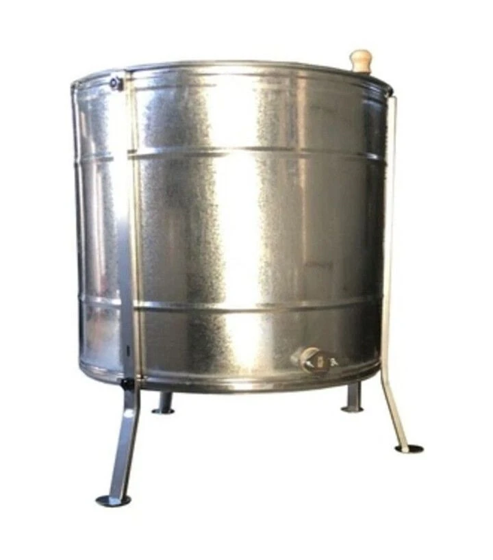 Медогонка 6-ти рамкова поворотна оцинкована, ремінний привід, з підставкою (M93244P)Медогонка на 6 рамок із поворотними касетами, ремінним приводом та металевою підставкою призначена для відкачування меду на пасіках із середнім та підвищеним навантаженням. Оцинкований бак стійкий до вологи й механічних впливів, що робить модель придатною для регулярної сезонної роботи. Поворотний принцип відкачування дозволяє рівномірно вибирати мед з обох сторін рамки без ручного перевертання. Підставка забезпечує зручну висоту для зливу меду та стабільність під час роботи.