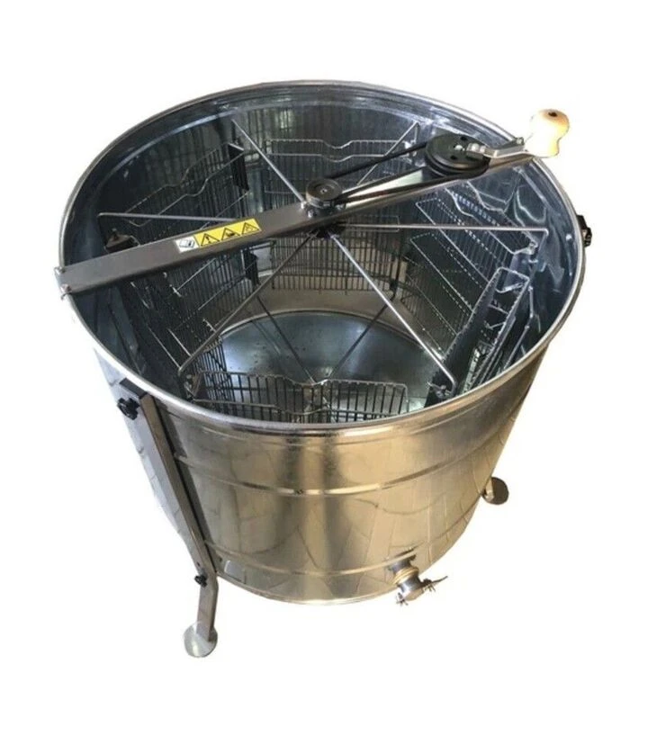 Медогонка 6-ти рамкова поворотна оцинкована, ремінний привід, з підставкою (M93244P) є практичним варіантом для пасік, де важливі продуктивність, зручність роботи та контрольований процес відкачування меду без використання електроприводу.