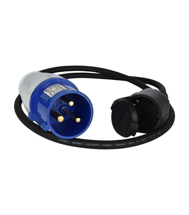 Мережевий подовжувач-адаптер Konner&Sohnen KS EX1M-1S призначений для підключення побутових приладів із розетками 16 А до силового виходу 32 А, який часто використовується на генераторах. Кабель довжиною 1 м має мідний провідник перерізом 3×1,5 мм², що дозволяє передавати потужність до 3600 Вт при напрузі 230 В. На виході передбачено дві розетки - стандартна Schuko та універсальна з заземленням. Завдяки класу захисту IP44 адаптер можна використовувати на відкритому повітрі, у вологих чи запилених місцях, що підходить для будівництва, гаража чи роботи з генератором.