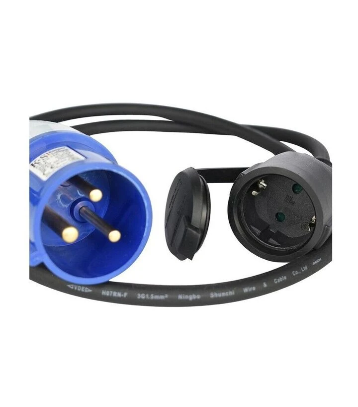 Модель розрахована на короткі підключення до генератора, коли потрібно оперативно живити прилади стандартного формату 16 А. Вихідні розетки оснащені надійним заземленням, а кабель має достатній запас міцності для побутових та робочих умов. Клас захисту IP44 дозволяє застосовувати адаптер у середовищах із пилом чи бризками води, що підвищує його універсальність.