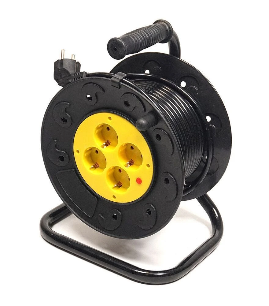 Мережевий подовжувач на котушці PowerPlant 3x1,5 мм², 15 м, 4 розетки (PPRA10M150S4)Мережевий подовжувач на котушці PowerPlant PPRA10M150S4 (JY-2002/15) - це надійний та зручний пристрій для розширення доступу до електромережі в побутових умовах. Він дозволяє підключати пристрої в місцях, віддалених від стаціонарних розеток, забезпечуючи захист електронної техніки від короткого замикання, перепадів напруги та перевантажень. Цей подовжувач ідеально підходить для дому, офісу, гаража чи дачі, де потрібна мобільність та компактність. Модель оснащена металевою котушкою для зручного намотування кабелю, 4 розетками з заземленням (Schuko) та фіксатором для запобігання розкручуванню. Кабель виготовлений з міді з перерізом 3x1,5 мм², що гарантує безпечну передачу потужності до 3,5 кВт. Підтримує напругу 220–240 В, сумісний з усіма побутовими приладами.