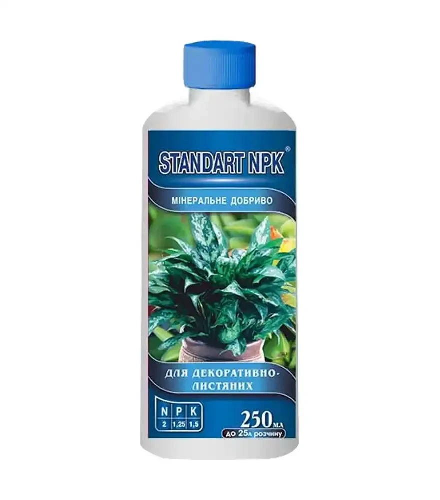 Standart NPK для декоративно-листяних – спеціально розроблене комплексне мінеральне добриво, що забезпечує максимальне проникнення необхідних поживних речовин та мікроелементів для рослин.