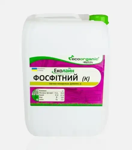 ЕКОЛАЙН Фосфітний (К) — це передове добриво, що має фунгіцидні властивості. Його застосування сприяє підвищенню стійкості рослин до грибкових захворювань, активізує розвиток кореневої системи та збагачує врожай корисними речовинами, покращуючи його якість.