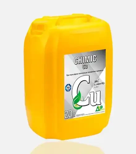 Хімік Мідь — це висококонцентроване добриво, що містить мідь у хелатній формі, спрямоване на підживлення сільськогосподарських культур у період вегетації. Завдяки своїй органічній формі, добриво легко засвоюється рослинами, сприяючи їхньому здоровому росту та розвитку.