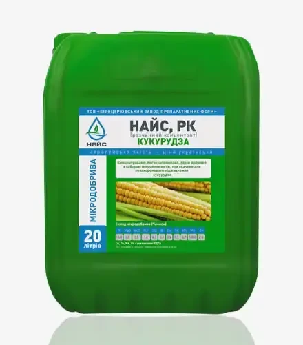 Найс Кукурудза — це високоефективне добриво, яке забезпечує кукурудзу всіма необхідними макро- та мікроелементами, сприяючи досягненню її максимальної врожайності.