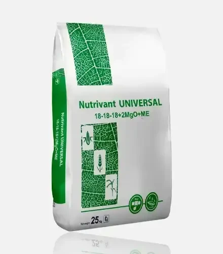 Нутрівант Універсальний — це комплексне водорозчинне добриво, виготовлене з високоякісних компонентів. Воно містить монокалійфосфат, нітрат калію, сульфат магнію та карбамід, а також комплекс мікроелементів. Це добриво ефективне для різних сільськогосподарських культур на всіх стадіях їхнього росту та розвитку. Добриво розроблене з використанням новітніх технологій для позакореневого підживлення, зокрема до його складу входить унікальний прилипач Фертівант.