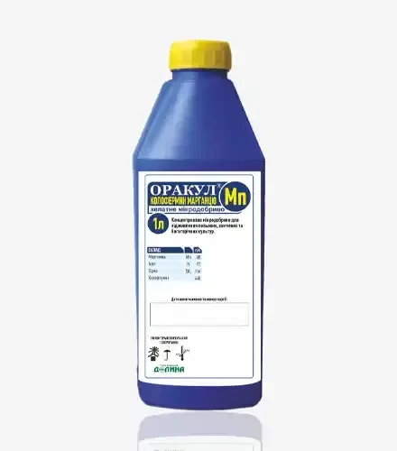 Оракул Колофермин Марганцю — це концентроване мікродобриво, спеціалізоване на забезпеченні рослин марганцем. Препарат є ефективним у ліквідації дефіциту марганцю, безпечний для листя та забезпечує проникнення активних речовин через листкову поверхню. Марганець відіграє ключову роль у різних фізіологічних процесах рослин, зокрема у формуванні пластид, синтезі лігніну та білків, а також у процесах фотосинтезу та дихання.
