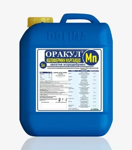 Оракул Колофермин Марганцю — це концентроване мікродобриво, спеціалізоване на забезпеченні рослин марганцем. Препарат є ефективним для подолання дефіциту марганцю, безпечний для листя та забезпечує проникнення активних речовин через листкову поверхню. Марганець відіграє ключову роль у різних фізіологічних процесах рослин, зокрема у формуванні пластид, синтезі лігніну та білків, а також у процесах фотосинтезу та дихання.