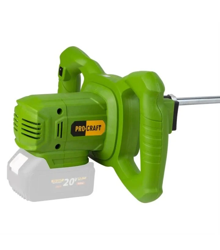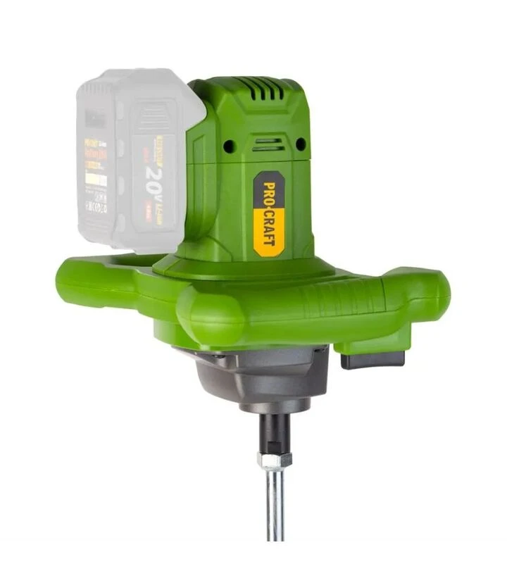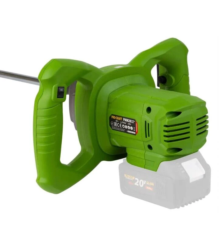 Procraft PMM-20 - це міксер з одним режимом швидкості, адаптованим під широкий спектр будівельних матеріалів. Його головна перевага - повна автономність. Він зручний у місцях, де немає доступу до електромережі. Корпус має зручну форму для тривалого утримання, а вага і балансування дають змогу зменшити втому рук. Насадка-віночок легко очищується після роботи.