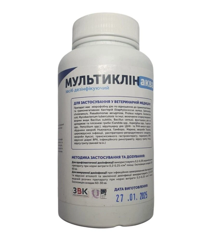 Миючий засіб Мультіклін Аква комплексний дезінфікуючий призначений для очищення та дезінфекції інвентарю на пасіці та в господарстві. Дозволяє підтримувати належний санітарний стан обладнання та підготувати його до роботи в сезон.