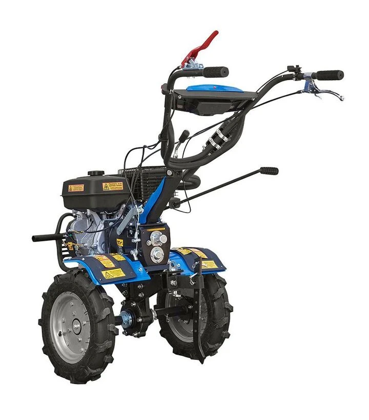 Ця модель є потужною базою для виконання широкого спектра аграрних робіт - від обробки ґрунту до транспортування причепа. Встановлені колеса покращують керованість, а широка фреза дає змогу обробляти більше за один прохід.