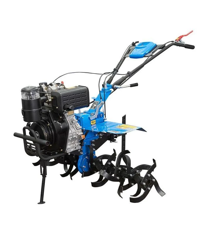Мотоблок дизельний Кентавр МБ2012Д, колеса 5,00-12Кентавр МБ2012Д - це потужний дизельний мотоблок, який підходить для щоденної роботи в господарстві, де потрібна техніка з високою тяговою силою та стійкістю на складних ділянках. Завдяки 12-сильному двигуну з об'ємом 438 см³ і великим колесам 5,00-12, ця модель добре справляється з важкими ґрунтами, обробкою великих площ і буксируванням навісного обладнання. Система повітряного охолодження підтримує стабільну температуру двигуна, а бак на 4 літри дає змогу працювати безперервно протягом кількох годин. Маса мотоблока - 128 кг - гарантує стійкість і ефективне заглиблення фрез.Передбачено дві передачі вперед і одну назад, що дозволяє вибрати відповідну швидкість залежно від умов. Ширина захвату фрез - від 87 до 140 см, а глибина обробки - до 20 см. Такі параметри забезпечують адаптивність при роботі на ділянках різного розміру і конфігурації. Габарити моделі - 178×67×138 см, що дозволяє комфортно зберігати техніку навіть у невеликих приміщеннях. Завдяки поєднанню потужності, ширини захвату і великих коліс цей мотоблок підходить для повного циклу польових робіт.