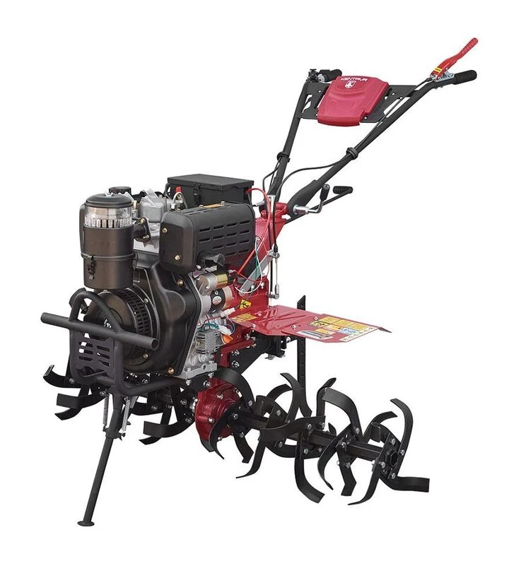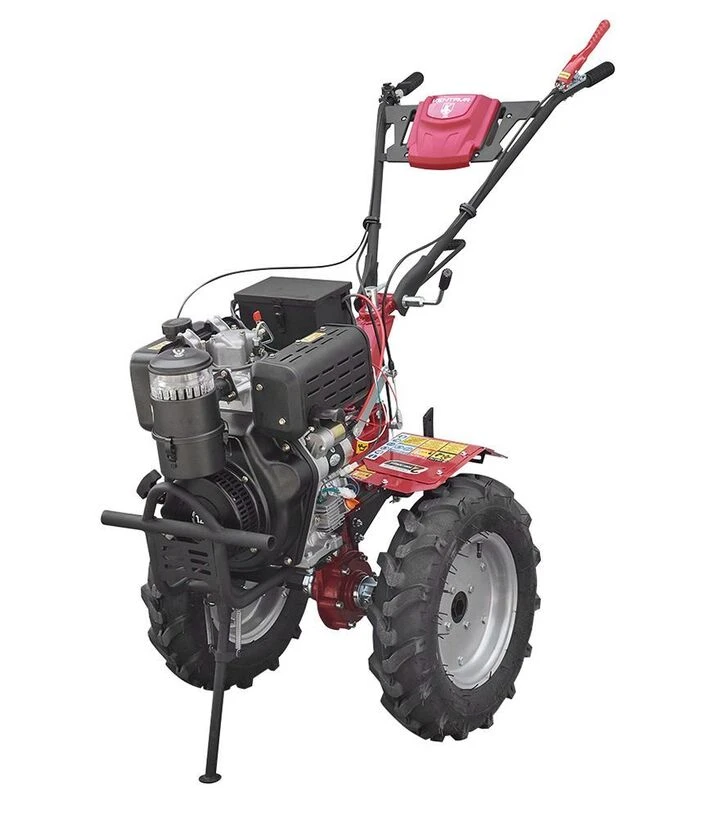 Мотоблок дизельний Кентавр МБ2012ДЕ, колеса 5,00-12Мотоблок Кентавр МБ2012ДЕ - це потужна дизельна модель із двигуном на 12 кінських сил, призначена для виконання широкого спектра сільськогосподарських робіт. Завдяки електростартеру запуск двигуна відбувається швидко та зручно навіть у холодну пору року. Вага агрегата - 139 кг - забезпечує необхідну стабільність при роботі з ґрунтом середньої та високої щільності. Великі колеса 5,00-12 підвищують прохідність і стійкість на м’яких, сирих або нерівних ділянках. Двигун об’ємом 438 см³ працює стабільно, має повітряне охолодження і дозволяє виконувати завдання з культивації, підгортання, оранки, перевезення вантажів та інші.Ширина захвату фрез - від 87 до 140 см - дозволяє адаптувати мотоблок до конкретної ділянки, а глибина обробки ґрунту досягає 20 см. Це забезпечує ефективне розпушування і підготовку землі перед посівом. У мотоблока є дві передачі вперед і одна назад. Паливний бак об’ємом 4 літри забезпечує тривалу роботу без частих дозаправок. Габарити моделі - 178×67×138 см - дозволяють зручно транспортувати і зберігати мотоблок у господарських умовах.