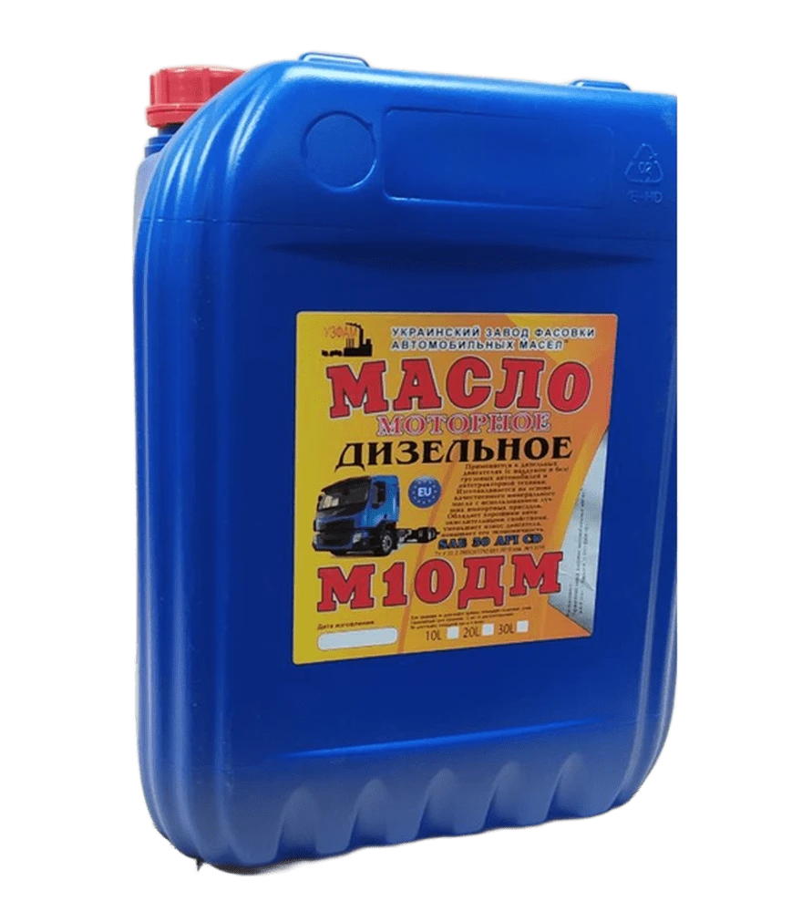 Масло моторне М10ДМ; SAE 30, API CD Мінеральне моторне масло М10ДМ призначене для дизельних двигунів із турбонаддувом і без нього, які працюють в умовах середніх та підвищених навантажень. Має стабільні змащувальні властивості, захищає деталі двигуна від зносу, корозії та утворення відкладень. Підходить для сільськогосподарської техніки, вантажних автомобілів і генераторних установок. Виробляється на основі мінеральної базової оливи з додаванням пакету присадок, що забезпечують стабільну роботу двигуна за температурних перепадів і високих навантажень.