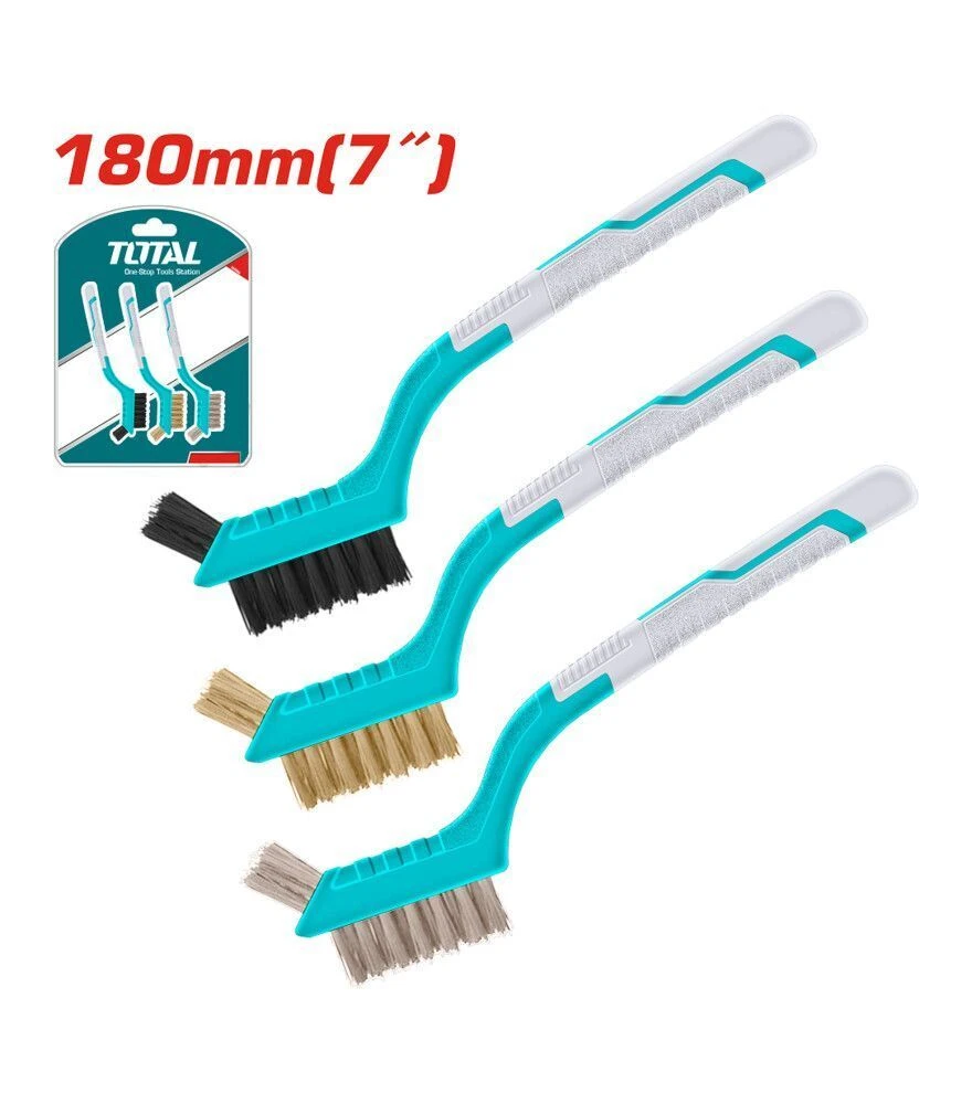 Набір TOTAL TAC38033 поєднує три типи щіток, які відрізняються жорсткістю та призначенням. Завдяки цьому користувач може обрати інструмент для делікатної або інтенсивної очистки. Щітки зручні у використанні та підходять як для побутових, так і для ремонтних робіт з металевими поверхнями.