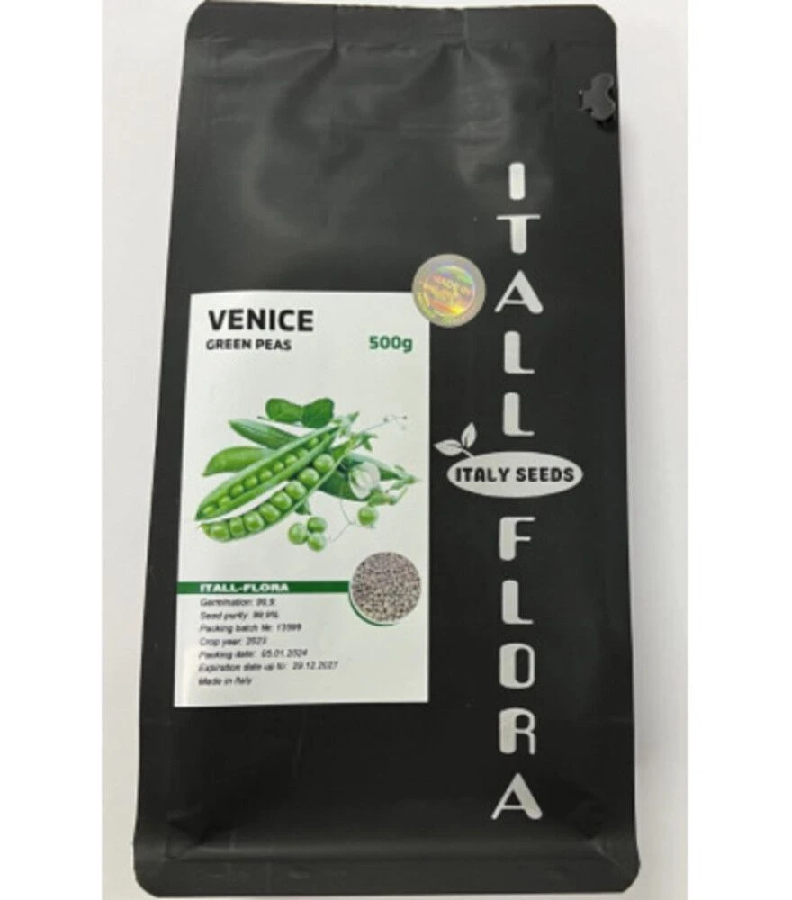 Насіння гороху Венеція - ранньостиглий овочевий сорт із формуванням двох стручків на вузлі та 12 зерен у кожному. Підходить для вирощування з орієнтацією на свіжий ринок, заморожування та консервування.