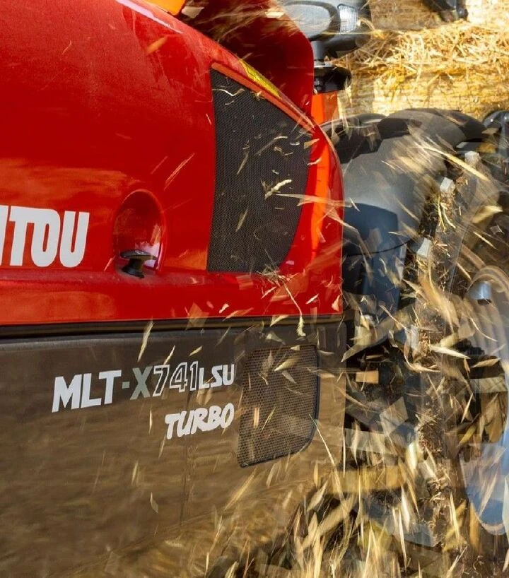 MANITOU MLT-X 741 T LSU - сільськогосподарський телескопічний навантажувач для щоденних робіт із важкими вантажами на фермі, току та складах. Підіймає до 4100 кг на висоту 6,90 м, максимальний виліт стріли - 3,90 м. Трансмісія Powershuttle з коробкою 4/4, двигун Perkins 101 к.с. і швидкість руху до 35 км/год забезпечують керованість під навантаженням та стабільні переїзди між майданчиками.
