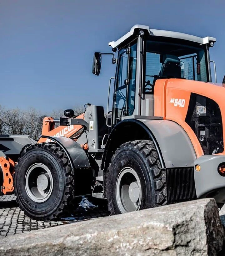 AR 640 орієнтований на велику продуктивність при перевалці матеріалів. Діапазон ковша 2,5–3,5 м³ дозволяє підібрати оснащення під щільність матеріалу та потрібний темп робіт. Водяне охолодження двигуна підтримує стабільну роботу при тривалих навантаженнях, а власна вага 13 300 кг підсилює стійкість під час руху з повним ковшем.
