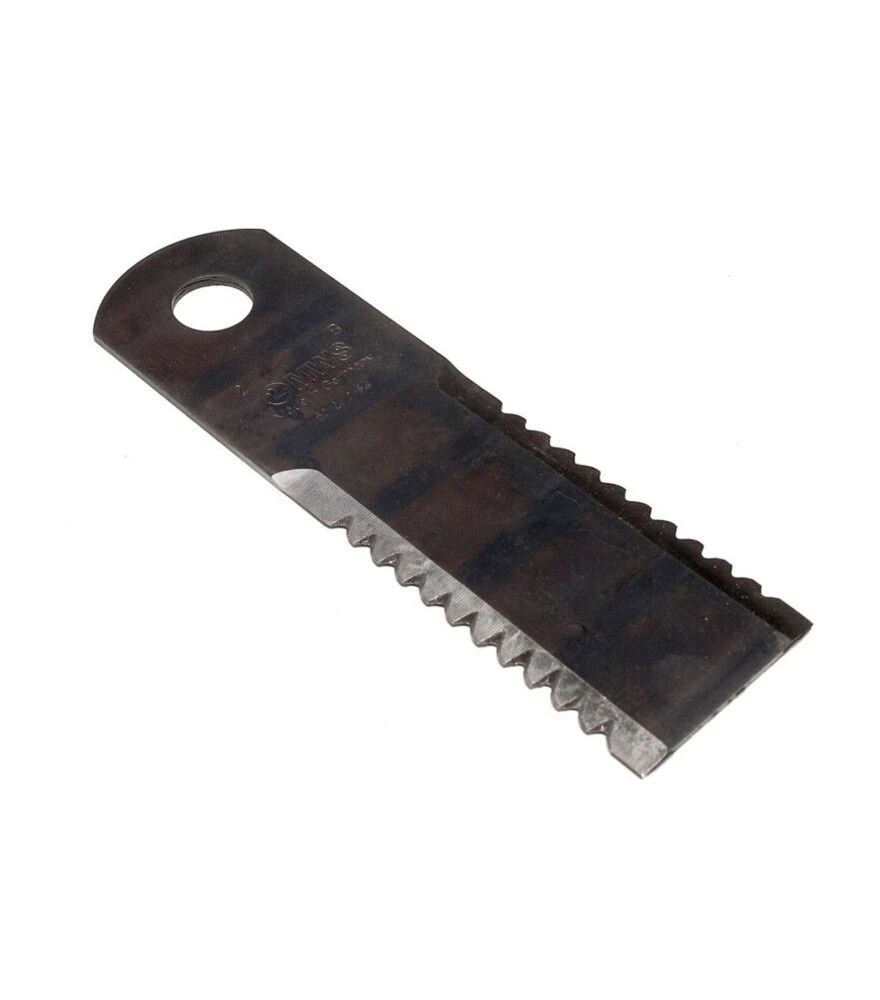 Ніж подрібнювача рухливого типу із зубчастою кромкою забезпечує інтенсивне подрібнення рослинних залишків, стабільну роботу механізму та зниження навантаження на вузли. Використовується у польових умовах та розрахований на тривалий ресурс експлуатації без втрати робочих характеристик.