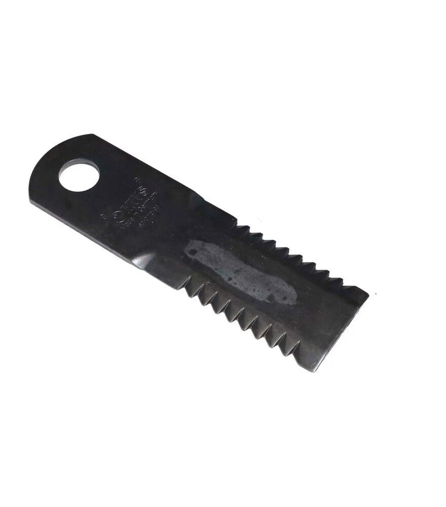 Ніж подрібнювача рухливого типу із зубчастою кромкою забезпечує інтенсивне подрібнення рослинних залишків, стабільну роботу механізму та зниження навантаження на вузли. Використовується у польових умовах, сумісний із технікою CLAAS та John Deere і розрахований на тривалий ресурс експлуатації.