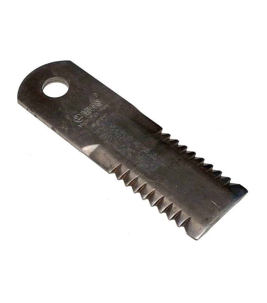 Ніж подрібнювача рухливого типу із зубчастою кромкою забезпечує інтенсивне подрібнення рослинних залишків, витримує високі навантаження та підтримує стабільну роботу механізму. Використовується у польових умовах та розрахований на тривалий ресурс експлуатації без втрати функціональних характеристик.