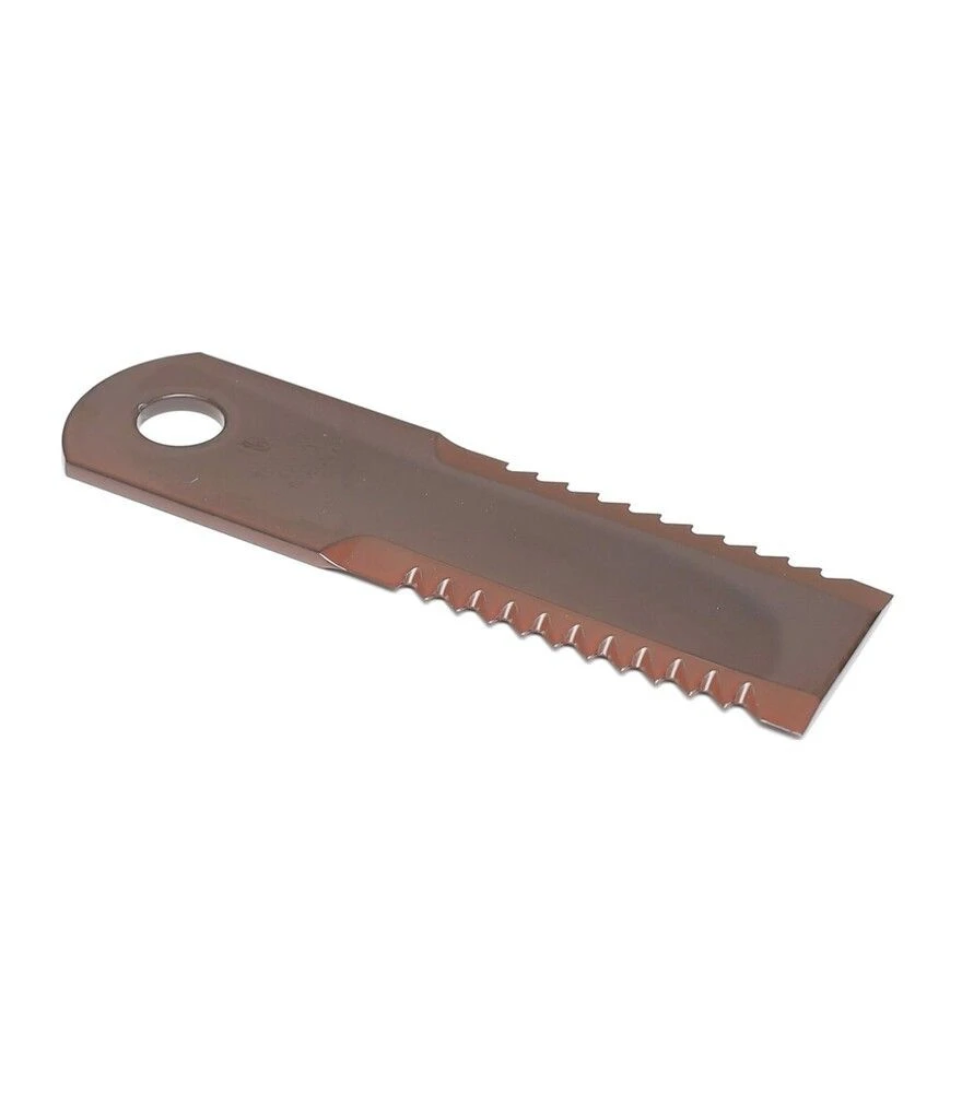 Ніж подрібнювача зубчастого типу забезпечує ефективне подрібнення рослинних залишків, стабільну роботу механізму та витривалість до навантажень. Використовується у польових умовах і дозволяє підтримувати продуктивність техніки без частих замін.