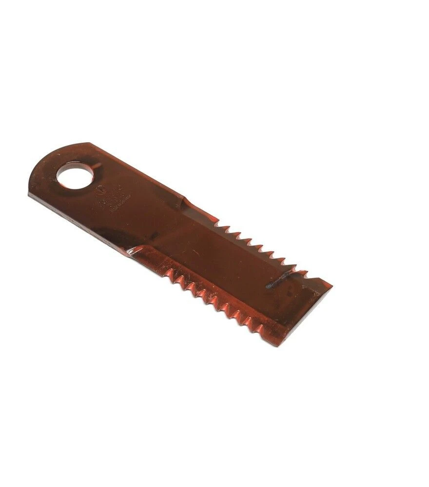 Ніж подрібнювача зубчастого типу з двосторонньою конструкцією забезпечує ефективне подрібнення рослинних залишків, подовжений ресурс експлуатації та стабільну роботу механізму. Використовується у польових умовах і дозволяє підтримувати ефективність техніки при інтенсивному навантаженні.