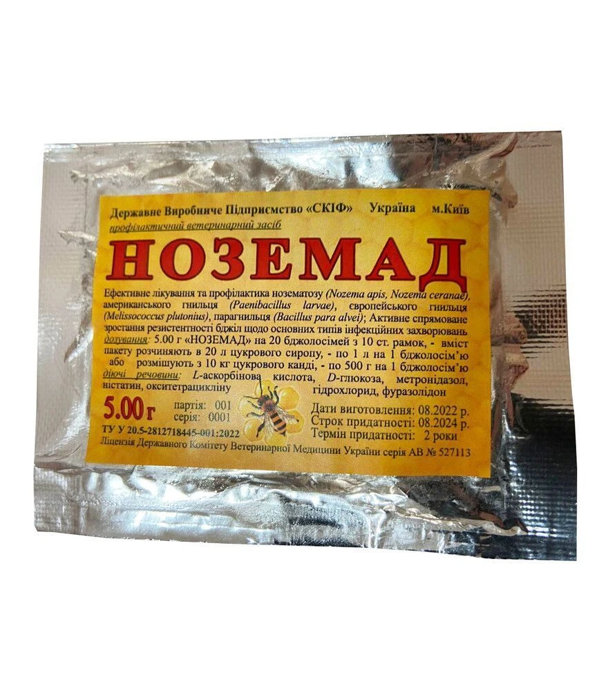 Ноземад - порошкоподібний препарат для профілактики та лікування нозематозу бджіл, а також змішаних бактеріальних захворювань. Використовується для роботи зі збудником Nozema apis та бактеріальною мікрофлорою, що може ускладнювати перебіг хвороби. Препарат має вигляд порошку від світло-жовтого до жовто-зеленого кольору у фольгованому полімерному пакеті. Застосовується ранньою весною до обльоту, після обльоту з сиропом, а також восени для профілактики. Лікування рекомендують поєднувати з дезінфекцією вулика, сот і інвентарю.