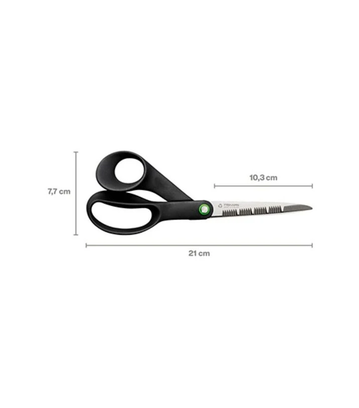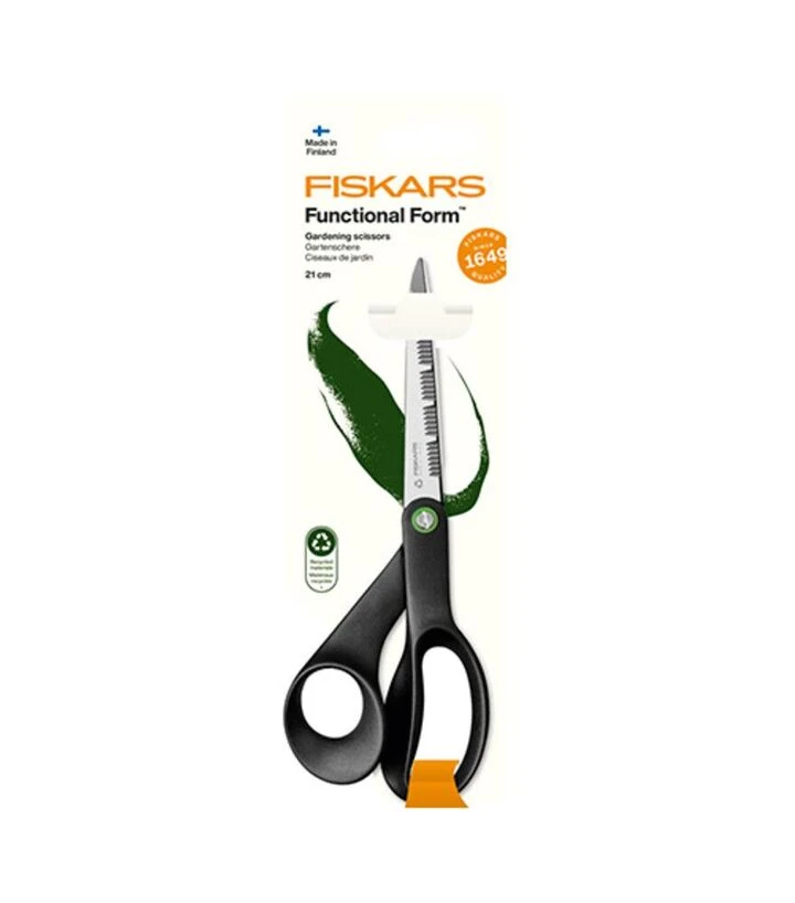 Садові ножиці Fiskars Functional Form зубчасті 21 см призначені для обрізання трав, квітів і м’яких стебел у саду та на городі. Довжина 210 мм і вага 90 г забезпечують зручність у щоденному використанні. Зазубрені леза з нержавіючої сталі надійно утримують матеріал під час різання, що дозволяє працювати акуратно та без прослизання. Модель розроблена для правшів і підходить для точних робіт у клумбах, теплицях та на присадибній ділянці.