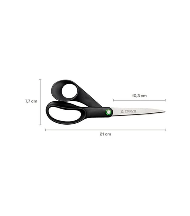 Універсальні ножиці Fiskars Functional Form 21 см призначені для широкого спектра завдань удома, в майстерні чи на роботі. Довжина 210 мм і вага 90 г забезпечують зручність під час різання паперу, картону, пакувальних матеріалів, тканини та інших побутових матеріалів. Леза з нержавіючої сталі щільно змикаються по всій довжині, що дозволяє отримати рівний та акуратний різ. Модель розроблена для правшів і підходить для щоденного використання.