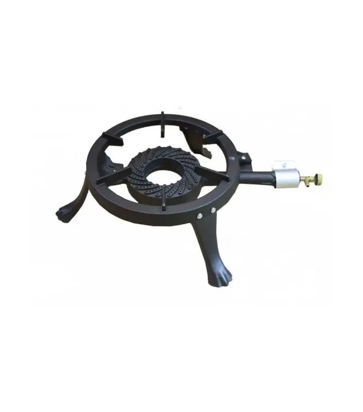 Пальник газовий переносний чавунний (TH-GB14) - газова плита потужністю 7 кВт для розігріву ємностей у великих обсягах. Підходить для нагрівання восктопок, автоклавів, казанів та інших місткостей, коли потрібна стабільна подача тепла і міцна опора. Чавунна конструкція має велику площу плити, тому зручно ставити габаритні ємності. Допустиме навантаження до 130 кг, що важливо для роботи з важкими каструлями або апаратами. Витрата газу становить 460 г/год.