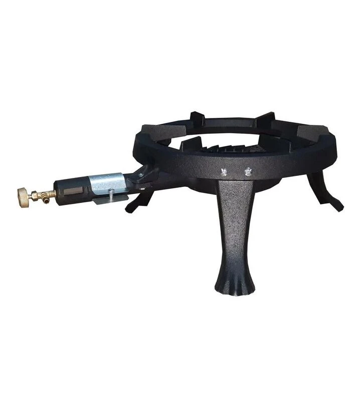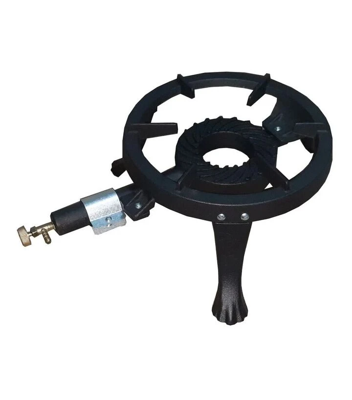 Пальник підключається до джерела газу та подає полум’я на чавунний пальниковий вузол діаметром 180 мм. Тепло рівномірно передається на плиту діаметром 330 мм, а масивний чавун допомагає утримувати стабільне горіння під навантаженням і при тривалому нагріванні.
