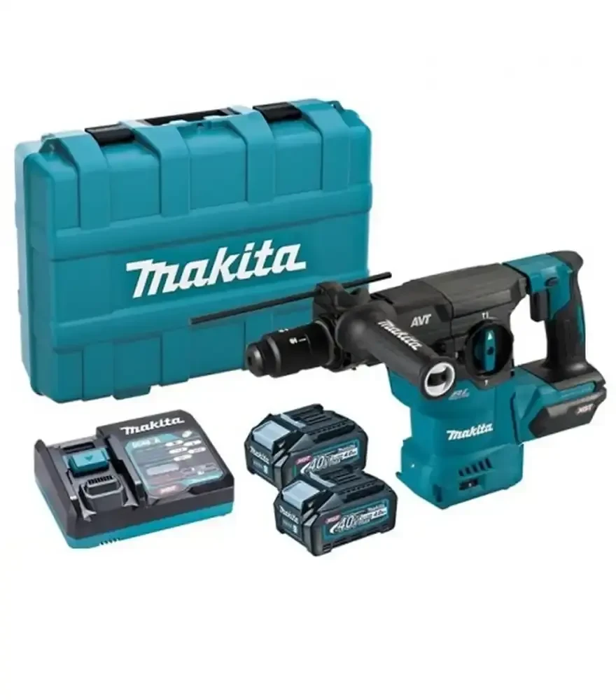 Комплектація: кейс; бічна рукоятка; глибиномір; зарядний пристрій; Обмежувач глибини; бічна ручка; швидкозмінний патрон; 2 акумулятори BL4040; зарядний пристрій DC40RA; кейс