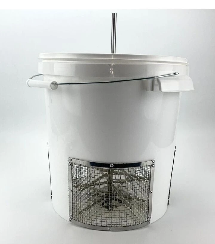 Пристрій допомагає організувати механічне відділення перги без стаціонарного обладнання, використовуючи дриль як привід. Формат 20 л підходить для переробки партіями та зручний для транспортування. Нержавіючі елементи спрощують очищення, а стабільна конструкція відра з закладними підвищує повторюваність результату при роботі з різними партіями сировини.