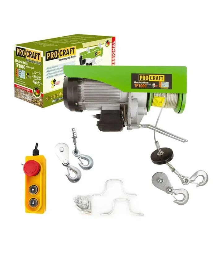 Підйомник ProCraft TP-1000 - це практичне обладнання для підйому вантажів у будівельних і господарських умовах. Він поєднує достатню потужність, велику висоту підйому та зрозумілу конструкцію, що дозволяє ефективно використовувати його в щоденній роботі.