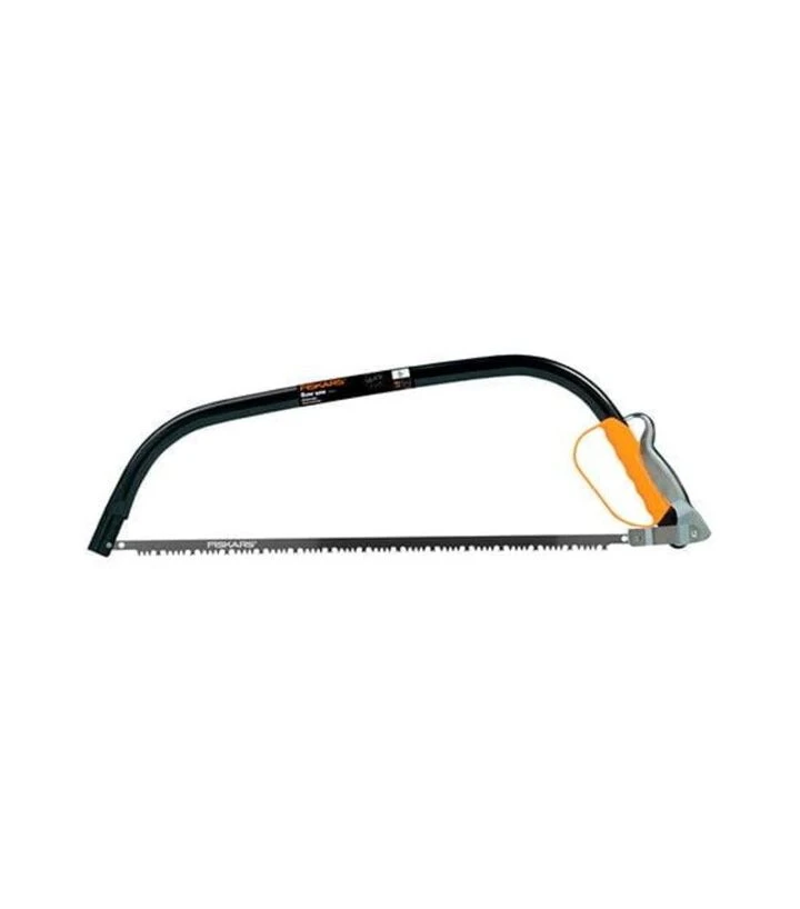Лучкова пила Fiskars SW30 61 см - інструмент для спилювання гілок і колод діаметром від 20 см і більше. Підходить для догляду за садом, обрізання старих дерев та виконання робіт із заготівлі деревини. Робоче полотно довжиною 610 мм виготовлене із загартованої сталі та має зубці спеціальної форми, що забезпечують пиляння в обох напрямках. Лучкова конструкція створює стабільний натяг полотна та дозволяє працювати навіть у щільній кроні або в обмеженому просторі. Загальна довжина 700 мм забезпечує ефективність під час роботи з деревиною великого діаметра.
