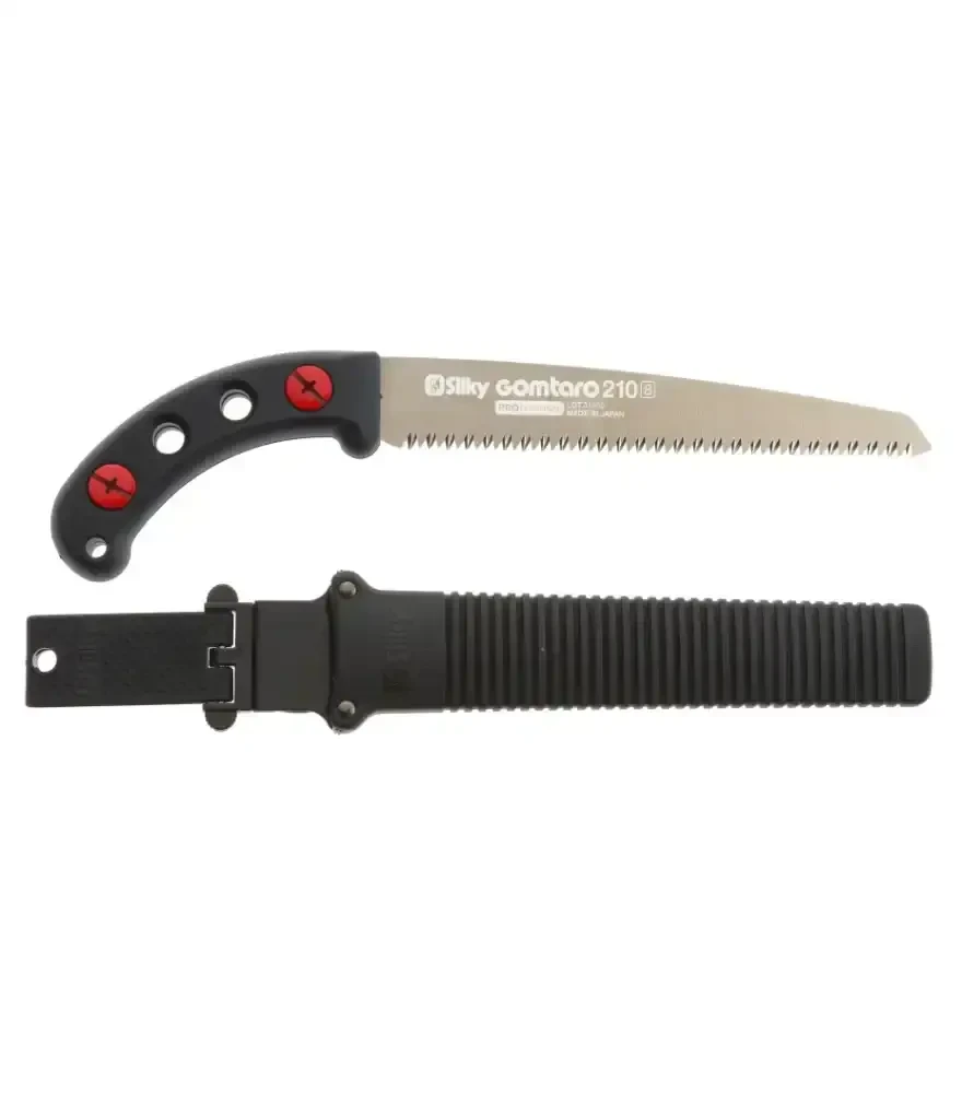 Silky Gomtaro 210-8 має пряме полотно, що підходить для точного пиляння. Гартовані зуби забезпечують ефективну роботу без потреби в обслуговуванні. Невелика ширина пропилу - 1,4 мм - дозволяє зберігати точність і чистоту різу. Чохол у комплекті підвищує безпеку зберігання інструменту.