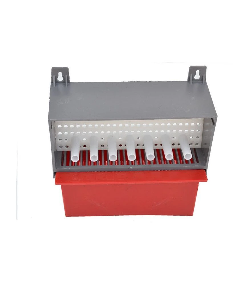 Навісьте пилкозбірник на передню стінку вулика так, щоб решітка з отворами 5 мм була навпроти нижнього льотка. Закрийте верхній льоток і приберіть прилітну дошку, щоб бджоли заходили лише через пилкозбірник. Регулярно перевіряйте коритце та забирайте зібраний пилок, не допускаючи зволоження. Періодично очищайте решітку від налипань.