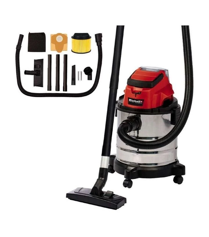 Акумуляторний пилосос Einhell TC-VC 18/20 Li S - Solo призначений для сухого та вологого прибирання в майстерні, гаражі, автомобілі чи на будівельному майданчику. Завдяки роботі від системи Power X-Change інструмент забезпечує повну мобільність та не потребує підключення до мережі. Бак із нержавіючої сталі об’ємом 20 л стійкий до корозії та достатньо місткий для збирання пилу, бруду та рідин. Всмоктувальна система Ø36 мм підтримує стабільний потік повітря, а функція продувки дає змогу очищати важкодоступні місця.