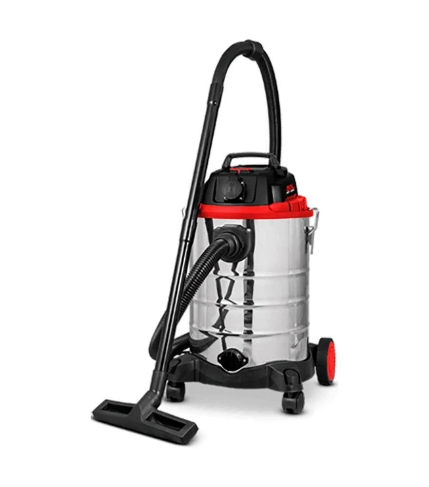 Потужність двигуна - 1400 Вт. Тип - мережевий; живлення 220–230 В. Призначений для сухого та вологого прибирання. Є в комплекті шланг, патрубки, прямокутна щітка, щілинна насадка. Обʼєм контейнера - 30 літрів. Прилад підходить для прибирання пилу, тирси, сміття, дрібного сміття або води/вологи, після ремонтів, пиляння, шліфування, при роботі у майстерні або гаражі.