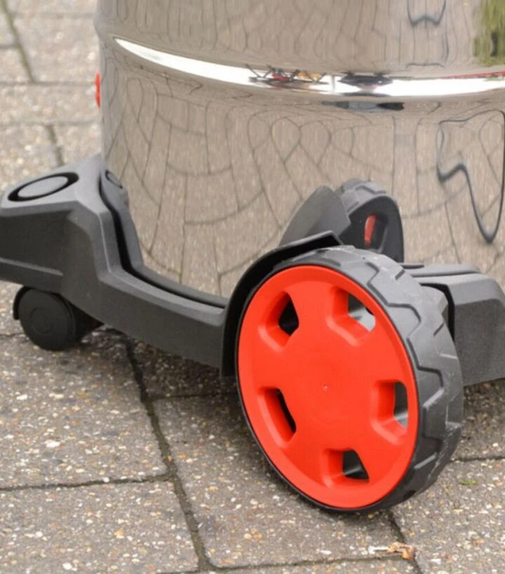 Модель HECHT 8330 має надійну конструкцію з акцентом на довговічність. Всі компоненти розташовані так, щоб мінімізувати ризик поломок або перегріву при тривалому використанні. Система фільтрації вбудована в конструкцію таким чином, щоб її можна було швидко очистити без розбирання усього пристрою. Насадки щільно фіксуються, забезпечуючи герметичність всмоктування. Завдяки коліщатам та зручній ручці HECHT 8330 легко переміщати по робочому простору, навіть якщо контейнер уже наповнений.