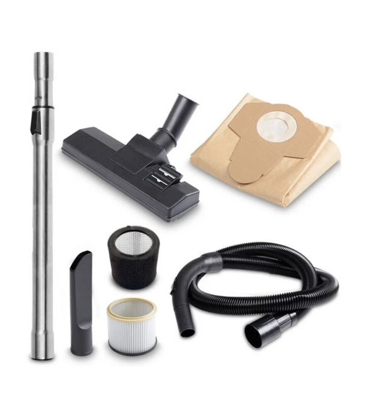 HECHT 8330 комплектується набором аксесуарів: щітка для підлоги, насадка для видування, телескопічна трубка, HEPA-фільтр, фільтр-мішок, фільтр тонкого очищення та пінопластовий фільтр. Така комплектація дозволяє адаптувати пристрій під різні умови та типи прибирання. Наприклад, HEPA-фільтр ефективно затримує мікрочастинки, що особливо важливо при прибиранні після шліфування чи різання, а пінопластовий фільтр незамінний під час вологого прибирання. Пристрій також має міцну ручку для транспортування та стійкі коліщата, що забезпечують маневреність навіть на нерівних поверхнях. Контейнер для сміття виготовлений з ударостійкого пластику, що витримує механічні навантаження під час будівельних робіт.