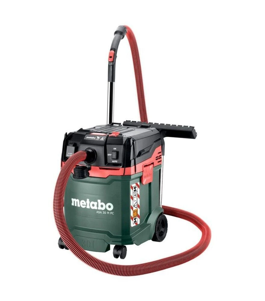 Metabo ASA 30 M PC - це мережевий будівельний пилосос із контейнером 30 літрів, продуктивністю 4200 л/хв та сертифікацією для пилу класу M, який забезпечує контроль пилу, стабільну тягу та відповідність вимогам безпеки під час професійних будівельних і монтажних робіт.