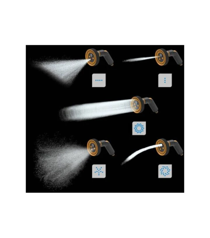 Набір дозволяє швидко організувати полив без додаткових аксесуарів. П’ять режимів забезпечують гнучкий догляд за різними культурами, а STOP-функція робить роботу чистішою та безпечнішою. Регулювання потоку й ергономіка зменшують навантаження під час тривалих робіт.