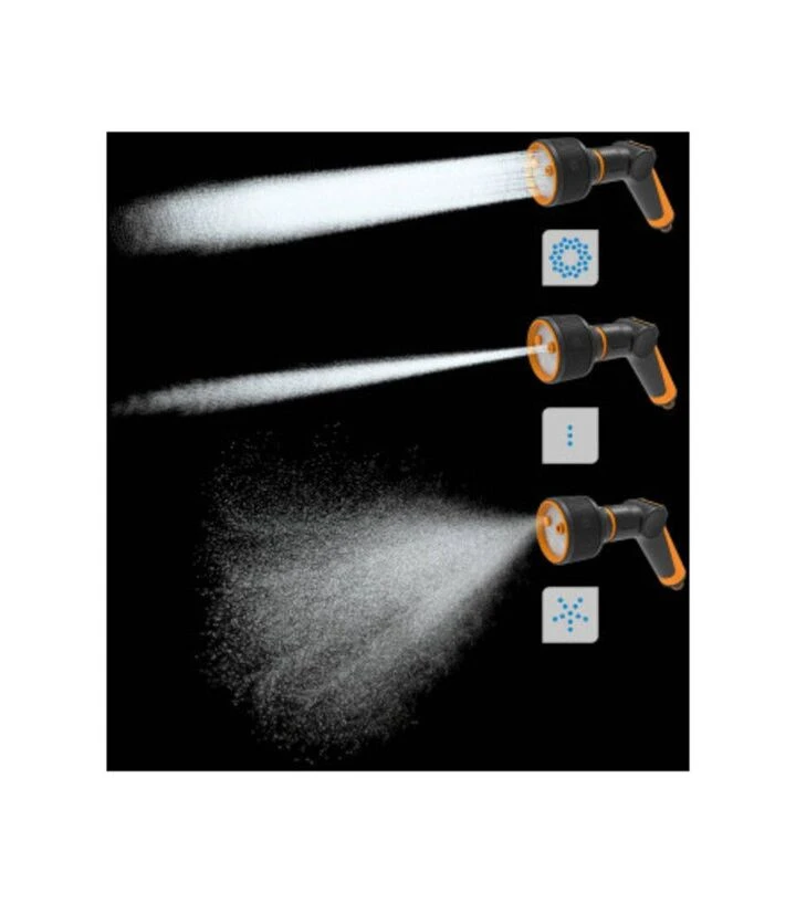 Пістолет дозволяє швидко змінювати спосіб поливу залежно від рослин: туман для молодих та чутливих культур, м’який душ для клумб, прямий струмінь - для точкових робіт та очищення. SoftGrip™ зменшує втому та покращує контроль, що важливо під час тривалих сезонних робіт.