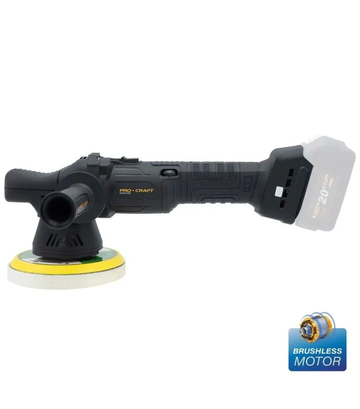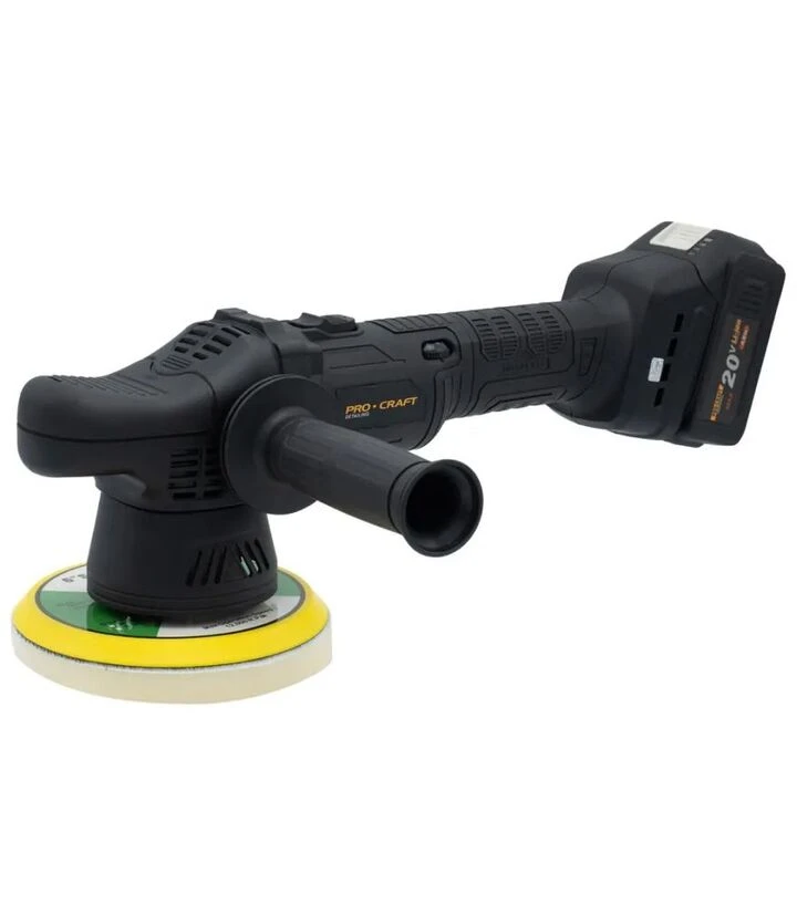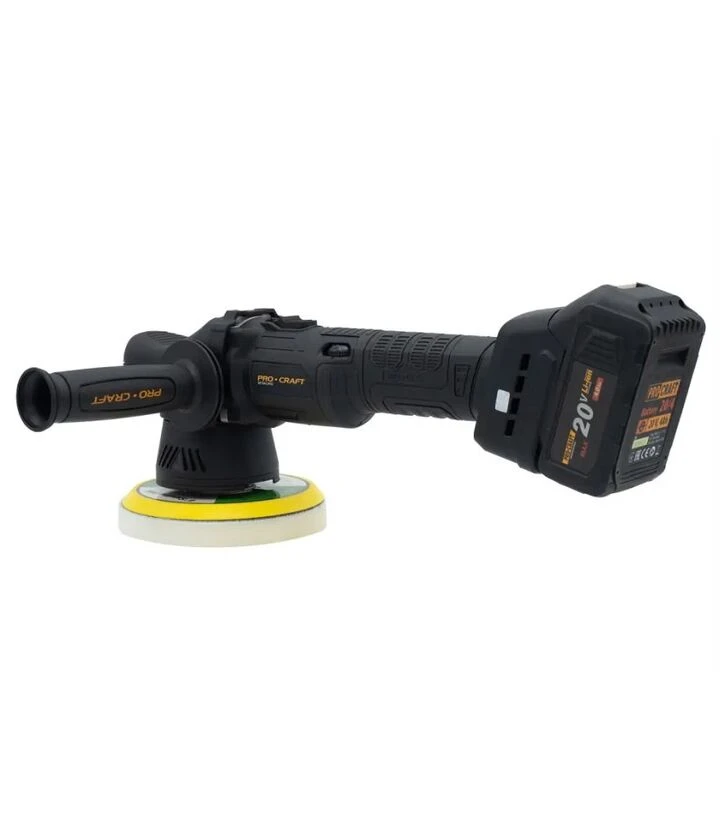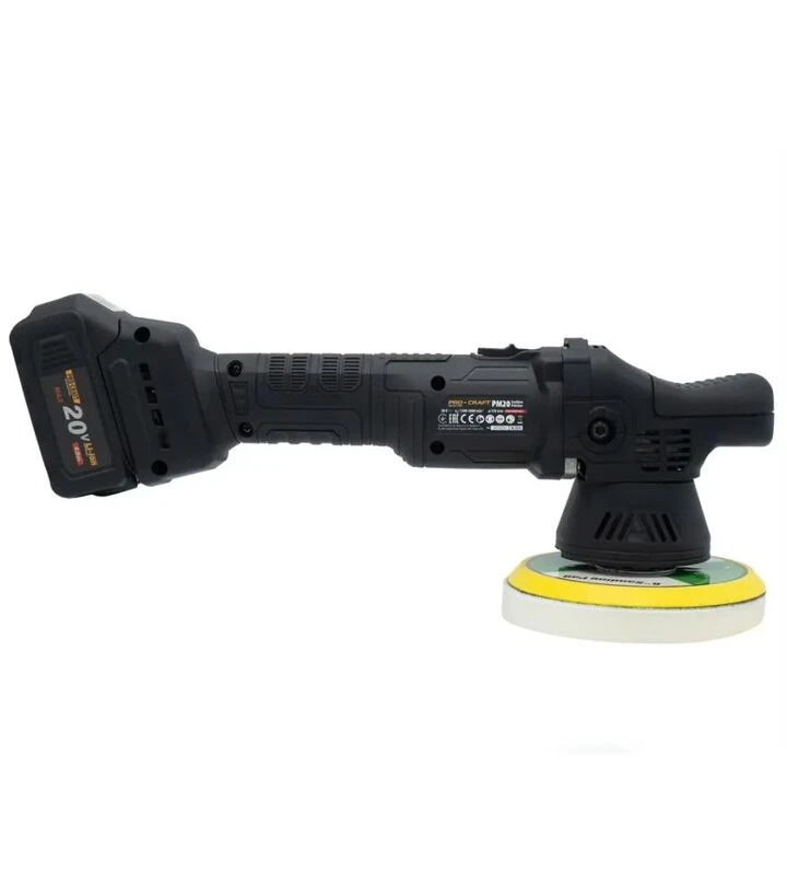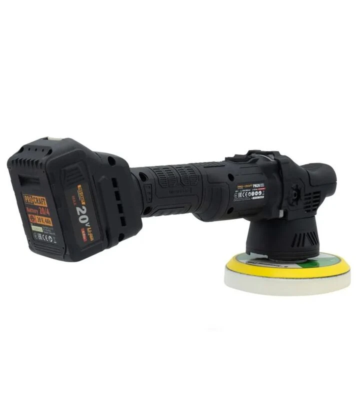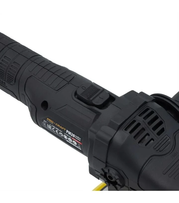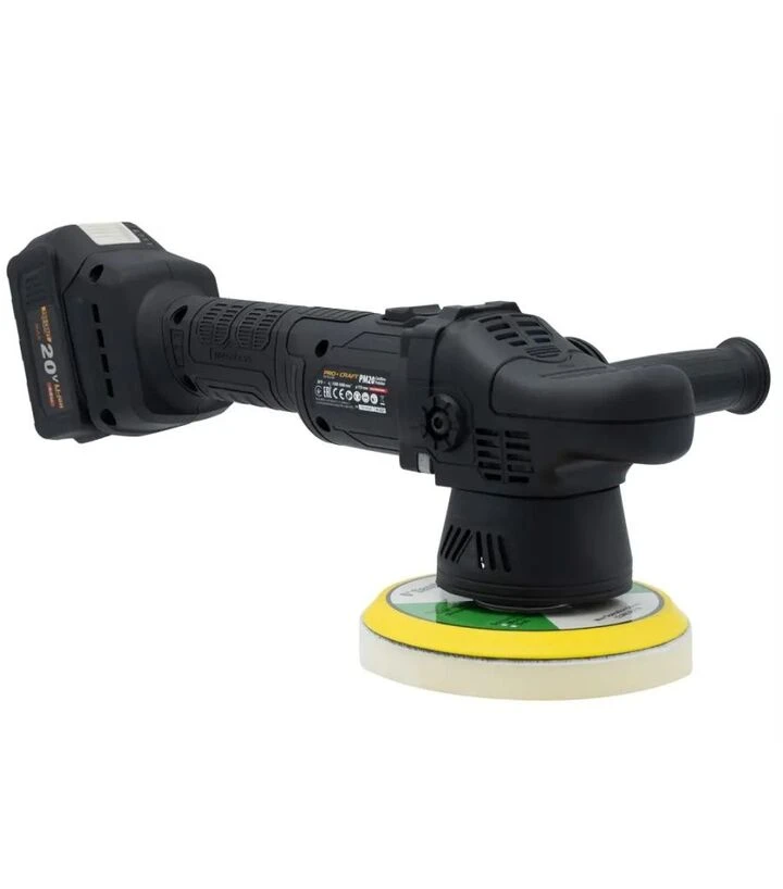 Висновок: Акумуляторна полірувальна машина ProCraft PM-20 - практичний інструмент для роботи з різними поверхнями, що поєднує мобільність, регульовану швидкість, захист від перевантаження та LED-підсвітку. Легка вага та компактний дизайн роблять її зручною для тривалого використання, а сумісність з акумуляторами Li-Ion 20 В забезпечує гнучкість у роботі.