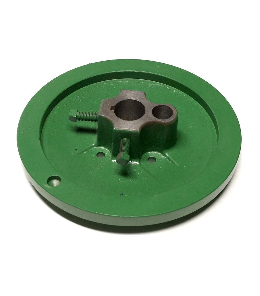 Зовнішній полудиск шківа варіатора вентилятора очищення призначений для стабільної роботи системи очищення зерна в зернозбиральних комбайнах John Deere. Він є важливою частиною варіаторного механізму, який регулює швидкість обертання вентилятора залежно від умов роботи. Конструкція полудиска забезпечує правильну взаємодію з ременем і внутрішнім диском, що дозволяє змінювати передаточне число та підтримувати оптимальні оберти вентилятора. Це безпосередньо впливає на якість очищення зерна та рівень втрат. Деталь використовується в моделях JD9500 та розрахована на роботу в умовах пилу, вологи та постійних навантажень. Надійна геометрія забезпечує стабільність роботи та рівномірний розподіл навантаження в системі.