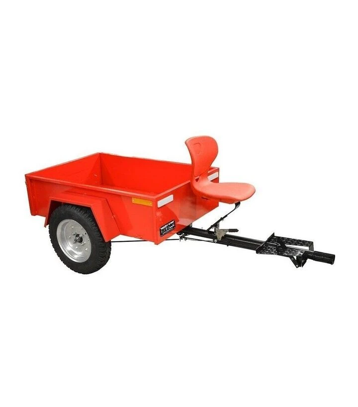 HECHT 7100 - це причіп для культиватора з великою вантажопідйомністю, міцною конструкцією і зручністю у використанні, що полегшує важкі задачі з перевезення матеріалів на ділянці або у господарстві.